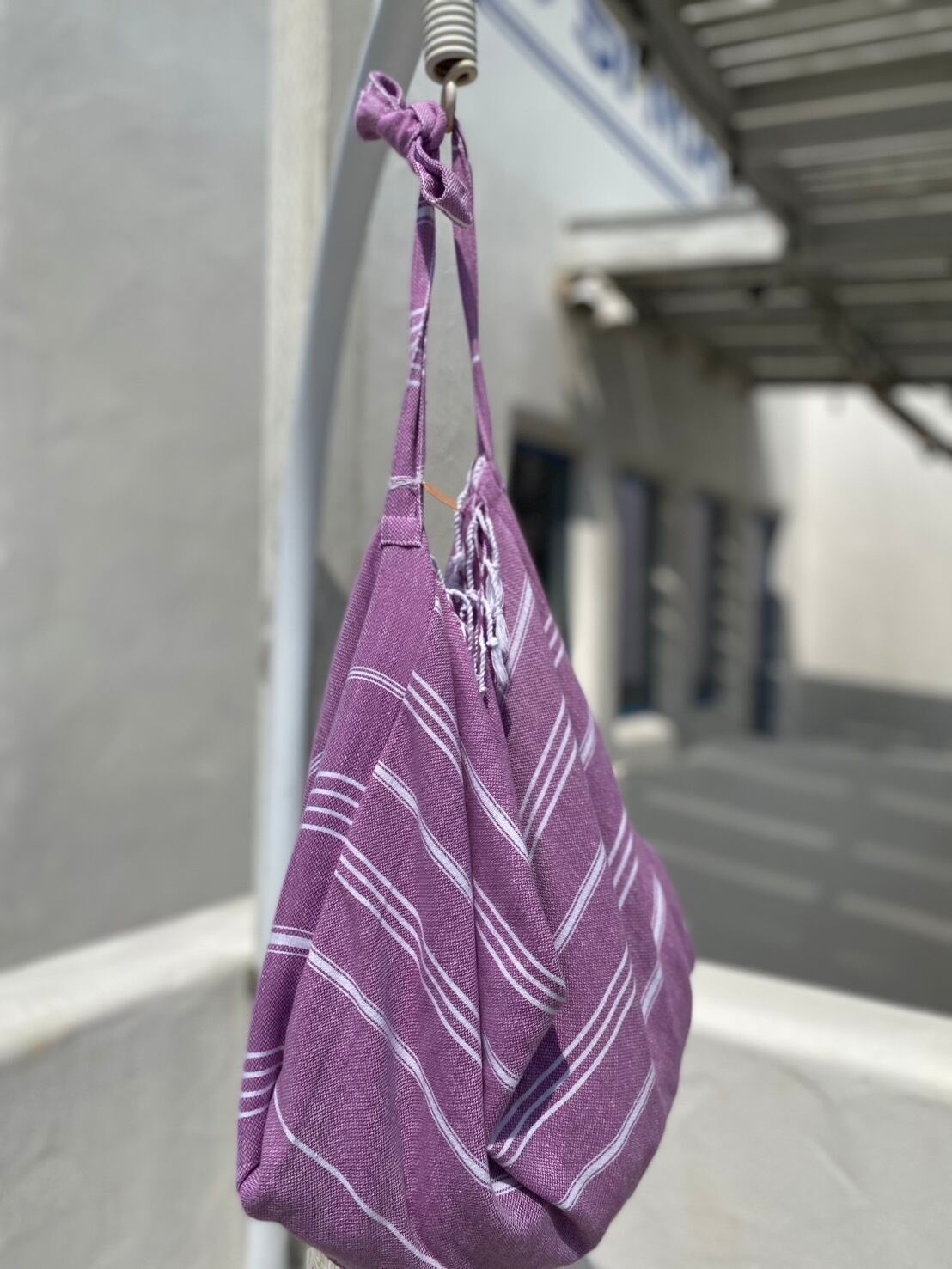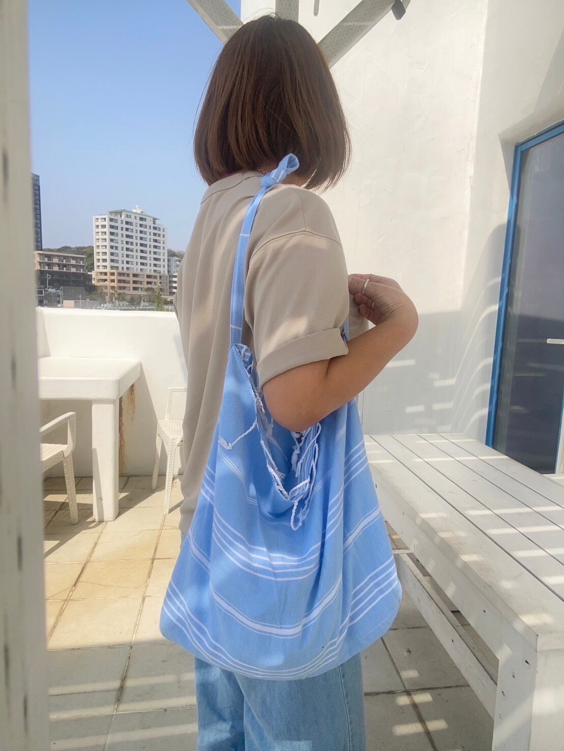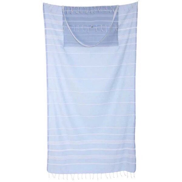 トルコタオルにポケットを内蔵しタオルをポケットに収納するとバッグに変わります。